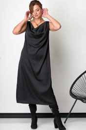 Платье-комбинация из атласа для нарядных образов SOVA 11046 черный