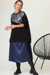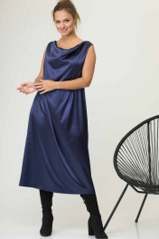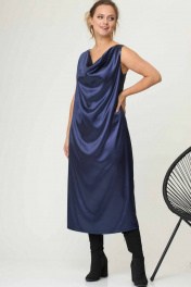 Платье-комбинация из атласа с водопадным вырезом SOVA 11046 синий