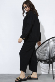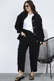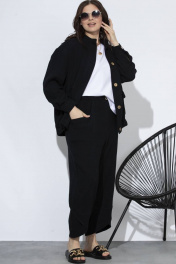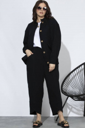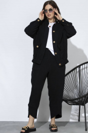 Стильный и комфортный вариант для повседневного летнего образа. Костюм выполнен из ткани Муслин (хлопок). Куртка-бомбер легкая и универсальная, накладные функциональные карманы. Низ куртки на резинке. Брюки свободного кроя, функциональные карманы по передним половинкам. Низ брюк модельный. Пояс частично на резинке. Длина бомбера по переду 73 см длина рукава от плеча 78 см Длина брюк по задней половинке 100 см, по передней 91