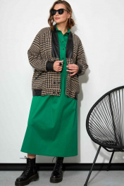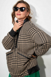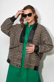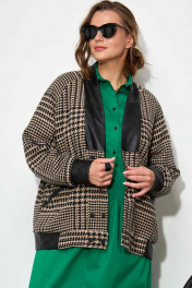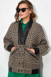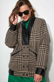 Бежевый демисезонный кардиган из пальтовой ткани и эко- кожи SOVA 11187 бежевый