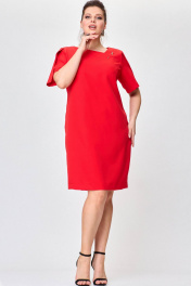 Платье-футляр классическая модель с асимметричным вырезом SOVA 11216 красный