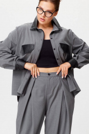 Брюки и рубашка в офисном стиле с карманами из экокожи SOVA 11242