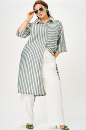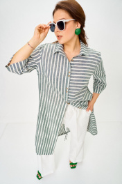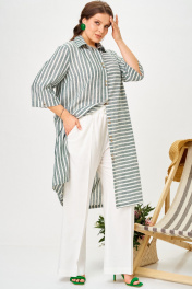 Брючный костюм двойка. Костюм выполнен из смесового льна. Удлиненная рубашка прямого кроя с боковыми карманами. Спинка прямая с кулисой, что позволит корректировать объем по низу. Универсальный вариант рубашки позволят ее комбинировать с другими предметами гардероба. Брюки палаццо с отстрочкой стрелки по передним и задним половинкам, пояс полностью на резинке, шнурок в поясе позволит корректировать высоту посадки на талии. Функциональные карманы. Однозначно стильный и комфортный вариант летнего, нарядного костюма для офиса и торжественного выхода.