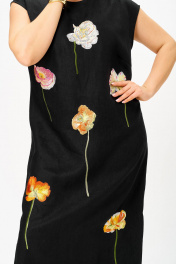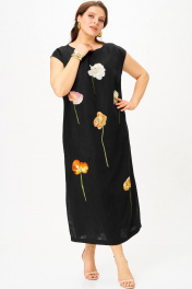 Яркое льняное платье. Удивительно комфортное для жаркого лета. Платье прямого силуэта. Спущенная линия плеча. Цветочная вторская вышивка придаёт изделию этнический и аутентичный стиль. В боковых швах разрезы. По спинке расположена фукциональная молния. Самобытность в современной трактовке.