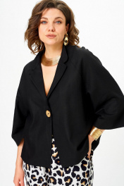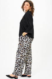 Стильный летний костюм. Легкий жакет из льна. Свободный без подкладки, рукав реглан. Застежка на одну пуговицу Рукав 3/4. Брюки -палаццо, свободные и практически невесомые. Пояс на круговой резинке в боковых швах карманы. Актуальный принт делает их трендовыми в этом сезоне. Черный жакет успокаивает активный принт и делает образ интересным.