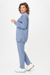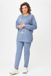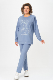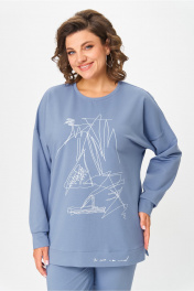 Комплект женский, двухпредметный, состоящий из свитшота и брюк. Свитшот с длинным спущенным рукавом, по полочке и по низу планки-печать. Круглая горловина, рукав на манжете.Брюки зауженные к низу, в боковых швах карманы, пояс на резинке. Свитшот: обхват груди:116,118,122, 126, 130, 134,138; обхват бедер:116,118,122,126, 130, 134, 138; длина рукава (спущенного от плеча): 72; ширина рукава:43/45;длина изделия : 72. Брюки: объем бедер:114,118,122, 126, 130, 134,138; объем талии:98,102,106, 110, 114, 118,122. Длина брюк: 102.