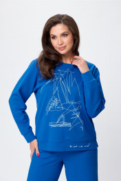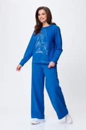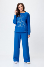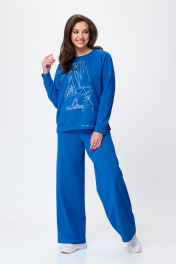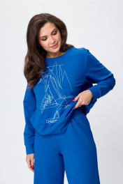 Комплект женский, двухпредметный, состоящий из свитшота и брюк. Свитшот со спущенным рукавом, с круглой горловиной, с планк0й по низу. Рукав на манжете, по переду принт-печать,в боеовых швах карманы. Брюки прямые к низу, пояс на резинке. Рост: 164 Размеры: 48, 50, 52 Свитшот: обхват груди: 104, 108, 112; обхват бедер: 104, 118, 122; длина рукава (спущенного от плеча): 72 ширина рукава: 42;44;46 длина изделия : 62. Брюки: объем бедер: 106, 110,114; объем талии: 88, 92, 96; Длина брюк: 104.