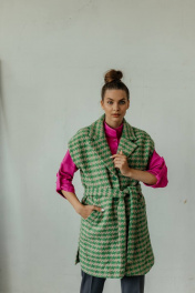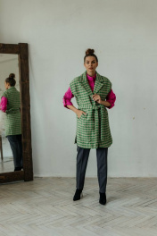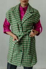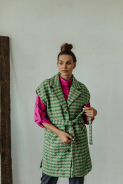 Зеленый жилет без рукавов с разрезами и тканевым поясом Стильная леди М-659 зеленый