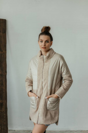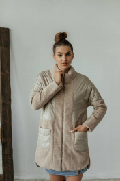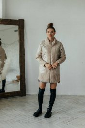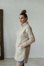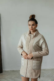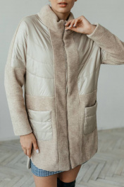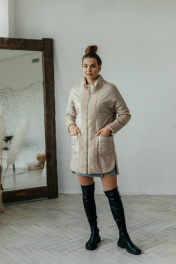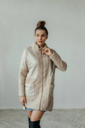 Пальто комбинированное демисезонное бежевое на замке со стильными деталями Стильная леди М-671 бежевый