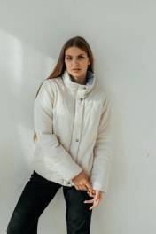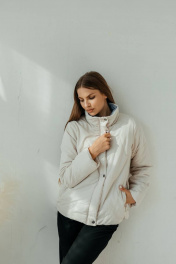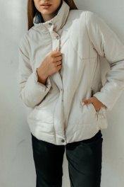 Куртка короткая белая демисезонная на молнии и кнопках Стильная леди М-684 молочный
