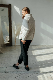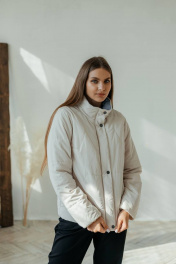 Куртка женская, длины до середины бедра, с длинным рукавом , рукав по желанию можно отвернуть. Застегивается куртка на молнию , а сверху на кнопках. Куртка теплая и одновременно очень легкая.