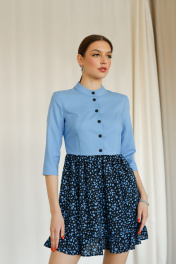 Это красивое платье отличается своей легкостью и женственностью. Верх изготовлен из полихлопка, что придает ему комфортность и дышащие свойства. Рукава платья имеют длину три четверти, что добавляет ему элегантности. Воротник стойка и застежки на кнопках придают этому платью строгий и стильный вид. Юбка изготовлена из шифона, который прекрасно драпируется и придает платью легкость и изящество. Длина мини создает чувство игривости и привлекательности. Подъюбник из вискозы обеспечивает комфортное ношение платья, защищает от неприятного прилипания и придает шелковистость. Это платье идеально подойдет для любого мероприятия, будь то деловая встреча, вечерний поход в ресторан или прогулка по городу. Оно будет выглядеть элегантно и привлекательно, подчеркивая достоинства фигуры и придавая уверенности в себе. Карманы: нет. Рост модели 178 см Размер (42) Рост 164-170 Обхват груди: 82-85 Обхват талии: 66-69 Обхват бедер: 92-95 Размер (44) Рост 164-170 Обхват груди: 86-89 Обхват талии: 70-73 Обхват бедер: 96-98 Размер (46) Рост 164-170 Обхват груди: 90-93 Обхват талии: 74-77 Обхват бедер: 99-101 Размер (48) Рост 164-170 Обхват груди: 94-97 Обхват талии: 78-81 Обхват бедер: 102-104