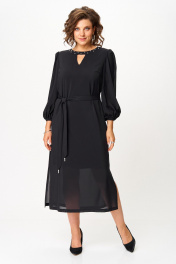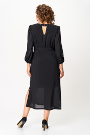 Платье женское из шифона прямое свободного силуэта, с втачным рукавом. Вырез горловины v-образный по переду и спинке создает эффектный силуэт, подчеркивая линию шеи и декольте. Горловина обработана планкой с застежкой по спинке на петлю и пуговицу. Рукав длиной 7/8, сборка по окату, понизу эластичная тесьма. В боковых швах разрезы обеспечивают свободу движений и добавляют образу легкости. Планка по горловине и пояс украшены бусинами. Съемный пояс, для разнообразных образов, подчеркивает талию. Длина платья по спинке: 124 см Длина рукава: 55 см