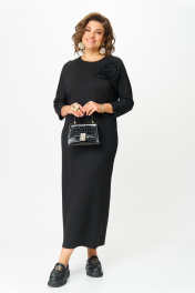Платье женское полуприлегающего силуэта длины миди подчеркнет фигуру, а цельнокроеный рукав длиной 7/8 придаст образу утонченность. Округлая горловина добавляет мягкости, а разрез и застежка молния по спинке в среднем шве придает нотку игривости и удобства. В боковых швах карманы. Съемное украшение в виде цветка замечательное дополнение, для создания разнообразных образов. Длина платья: 123 см Длина рукава от горловины: 60см