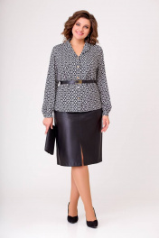 Мультиколор блуза с пиджачным воротником и декоративной застёжкой Swallow 632 черно-бежевые_цепи