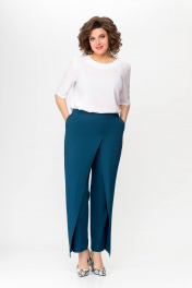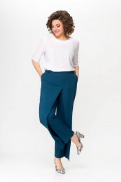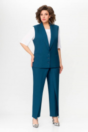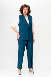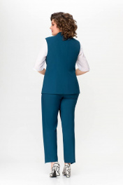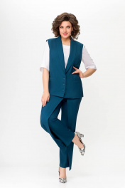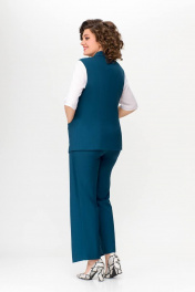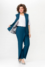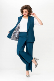 Костюм, состоящий из жилета и брюк. Жилет и брюки выполнены из плательно-костюмной ткани. Жилет на подкладке. Перед жилета с рельефами. По линии талии обработаны прорезные карманы с листочками. Воротник -“шаль” жакетного типа. По спинке - средний шов и рельефы. Жилет с центральной застежкой на 3 петли и 3 обтяжные пуговицы. Длина жилета по спинке 67см (+/-1 см) Брюки прямые, c декоративным запахом по переду. По задним половинкам брюк обработаны талиевые вытачки. По переду обработаны карманы с отрезными бочками. Брюки застёгиваются в боковом шве на декоративную молнию. Верх брюк обработан притачным поясом, по спинке которого вставлена резинка. Длина брюк по боковому швуот пояса до низа 100 см (+/-1см). Данная модель очень хорошо сочетается с блузой Модель 534.