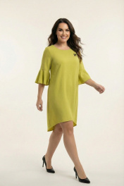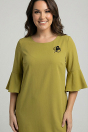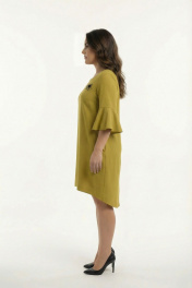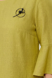Вискозно-льняное платье с нагрудными вытачками и воланом Swallow 680 оливково-горчичный