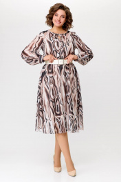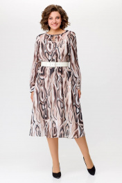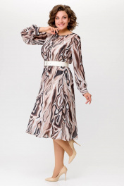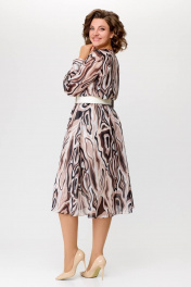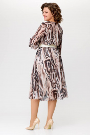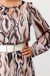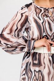 Миди платье с шифоновой диагональной юбкой Swallow 684 принт_бежево-молочные_волны