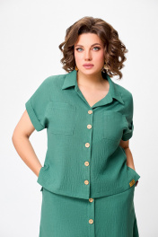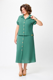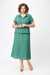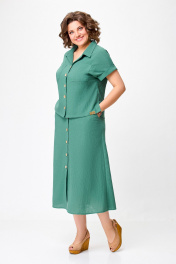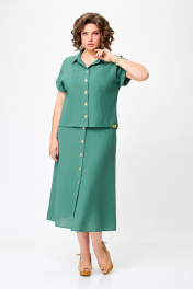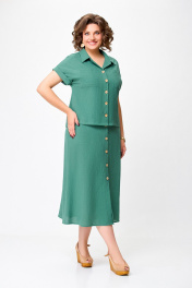 Лененый костюм блуза и юбка с разрезами Swallow 750.2 светлый_изумруд