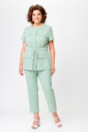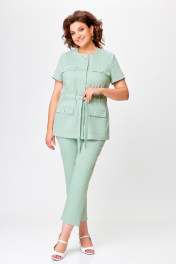 Зеленый летний костюм из хлопка с жакетом и брюками Swallow 759.2 мята
