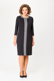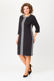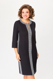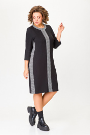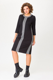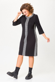 Платье из трикотажа с молнией и вставками демисезон черное Swallow 773 черный+черно-белая_гусиная_лапка