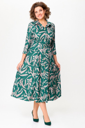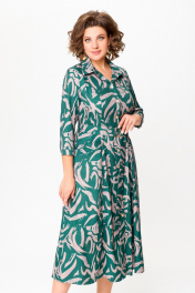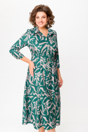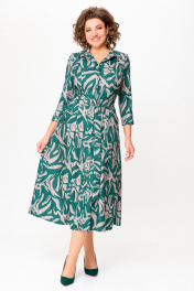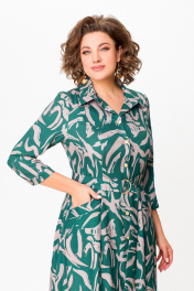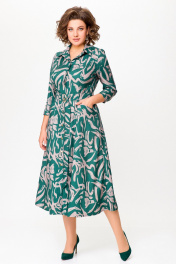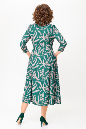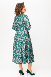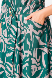 Платье из вискозы с поясом и кокетками Swallow 784.2 изумруд/принт"бежевая_абстракция"