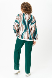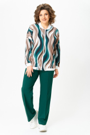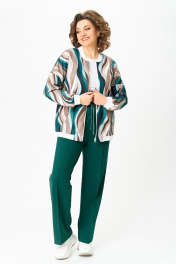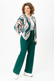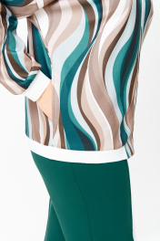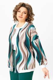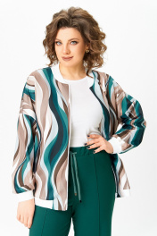 Бомбер женский из вискозного трикотажного полотна свободного кроя со спущенной линией плеча и с центральной застёжкой на молнию. В боковых швах обработаны карманы. Горловина округлая со стойкой из трикотажного довяза. Рукав длинный. По низу рукава и изделия - довяз. Длина изделия по спинке – 64 см