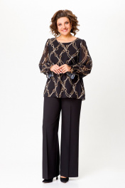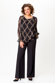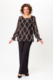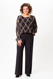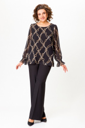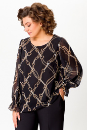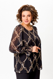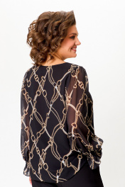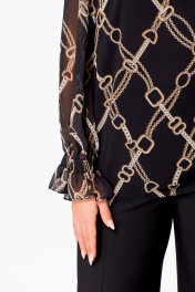 Шифоновая блузка А-силуэта с нагрудными выточками Swallow 803 чёрный,принт"цепи"