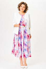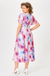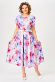 Платье женское из мягкой вискозной ткани, Х-образного силуэта с полуприлегающим лифом. Платье отрезное по линии талии. По переду лифа отрезные рельефы, по спинке талиевые выточки. Юбка расклешённая из шести клиньев со встречными складками по линии талии. В среднем шве спинки застёжка на потайную тесьму-молнию. Рукав втачной покроя тюльпан, длина рукава 15 см. В подарок ремень с декоративной пряжкой. В размере 64 пояс из основной ткани. Прекрасно сочетается с жакетом Модель 523. Длина изделия по спинке 120 см.(+/-2 см)