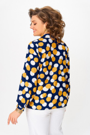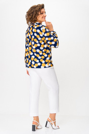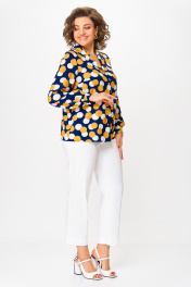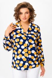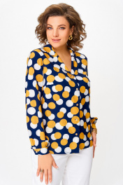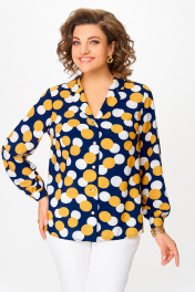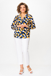 Блузка женская, прямого силуэта. По переду блузы обработаны нагрудные вытачки. Воротник – пиджачного типа. Застёжка центральная на петли и декоративные пуговицы. Спинка цельнокроеная. Рукав втачной одношовный, со сборкой. По низу рукава - притачная манжета, застёгивающаяся на петлю и декоративную пуговицу. Длина рукава 61 см (+-1 см). Длина по среднему шву спинки 64 см (+-1 см). Ремень не входит в комплект. Блуза прекрасно сочетается с брюками Модель 305,342.