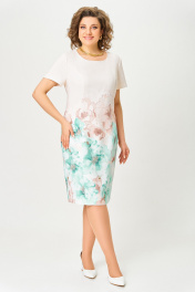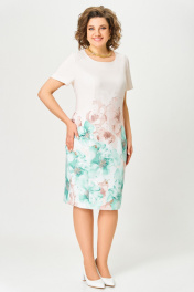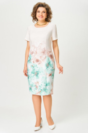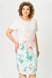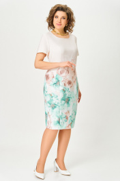 Платье Swallow 847.1 кремовый/принт_мятно-беж_цветы