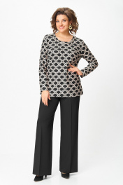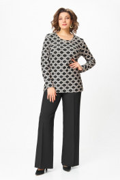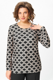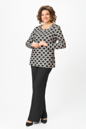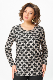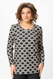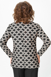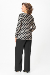 Джемпер из тонкого вискозного эластичного полотна. По переду нагрудные выточки, спинка с центральным швом. Горловина круглая, спереди обработана обтачкой с декоративным кантом. Рукав втачной, длинный. Длина по спинке – 61 (+/-1) см. Длина рукава – 58 см.