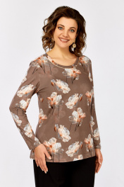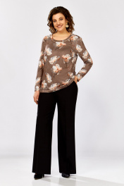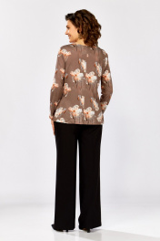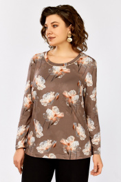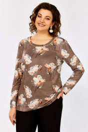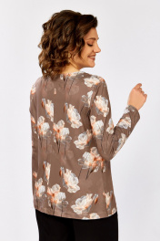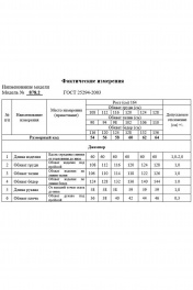 Джемпер из тонкого вискозного эластичного полотна. По переду нагрудные выточки, спинка с центральным швом. Горловина круглая, спереди обработана обтачкой с декоративным кантом. Рукав втачной, длинный. Длина по спинке – 60 (+/-1) см. Длина рукава – 58 см.