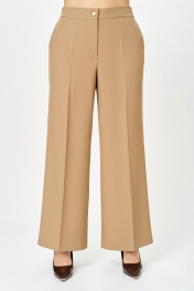 Брюки прямого силуэта. Передние и задние половины брюк с стрелками от среза притачивания пояса до низа. На передних половинах брюк карманы наклонные к боковому шву. По задним половинкам талиевые вытачки. Верх брюк обработан притачным поясом с эластичной тесьмой-резинкой по спинке. Застёжка по переду на тесьму-молнию и петлю, пуговицу на поясе. Длина брюк по боковому шву, без учёта ширины пояса – 105 (+/- 1) см.