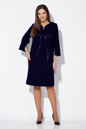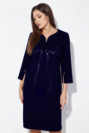 Платье А-силуэта с вышивкой и разрезом на рукаве TAiER 1253 темно-синий