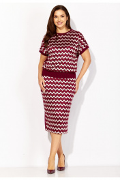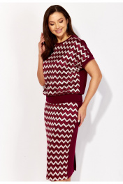 Комплект женский, 2х предметный, состоящий из блузы и юбки. Блуза прямого силуэта, с коротким цельнокроеным рукавом, снизу на манжете. Вырез горловины круглой формы. По низу рукавов и горловине подрезные бейки. Юбка прямая. Сзади средний шов и подрез снизу. Пояс на резинке(по переду отрезной, по спинке цельнокроеный) Перед блузы и юбки выполнен из полотна с паетками, спинка блузы и юбки из гладкого трикотажного полотна. По переду блузы и юбки трикотажная подкладка.