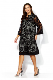 Комплект женский, 2х предметный, состоит из верхнего и нижнего платья. Верхнее платье выполнено из ткани органза. Платье А-силуэта с рукавом длинной 3/4. Рукав со спущенной линией плеча. По низу рукава и платья отделочные планки из атласа. Вырез горловины по переду "лодочка", по спинке фигурный акцентирован атласной бейкой. По спинке декоративная нашивка. Декором служит съемный цветок. Нижнее платье из вискозного атласа А-силуэта с выточками нагрудными, без рукавов. Вырез горловины по переду У-образной формы, закругленный, по спинке острый. По спинке средний шов.