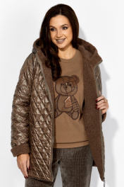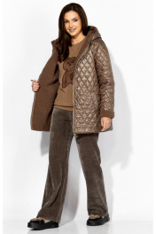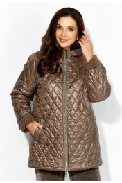 Куртка женская, демисезонная. Верх куртки - плащевка, стеганная на синтепоне. Подкладка - экомех "барашек". Куртка прямого силуэта с длинным рукавом "реглан". Длина рукава может регулироваться отворотом. По переду центральная застежка на "молнию" и прорезные, функциональные карманы. Горловина оформлена капюшоном-стойкой по переду.