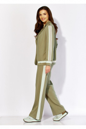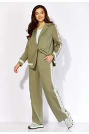 Комплект женский, двухпредметный, состоящий из жакета и брюк, из трикотажного полотна "TENSEL" Жакет прямого силуэта, по низу на широкой подрезной планке. По переду вертикальные рельефы. Воротник отложной с лацканами. Крой борта, по низу, закруглен. Застежка центральная, на кнопки. Рукав втачной, длинный с отделочным лампасом и манжетой по низу. Манжета рукава и планка низа, с отделочными деталями. Спинка со средним швом. Жакет без подкладки . Брюки прямые. По переду фигурные рельефы.Карманы в рельефах. По боку отделочный лампас. Пояс притачной, с резинкой. Центральная часть пояса гладкая.
