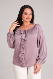 Приталенная блуза из текстиля с воланами и разрезами Таир-Гранд 62107 какао