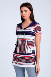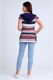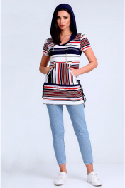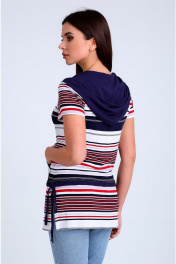 Легкая удлиненная блуза с капюшоном и карманами Таир-Гранд 62146 полоска