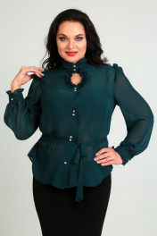 Круглогодичная женская блуза с приталенным поясом Таир-Гранд 62159 изумруд