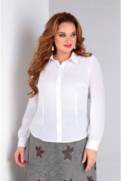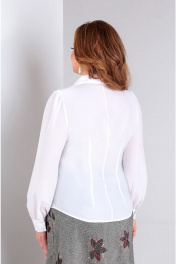 Стильная классическая блуза, приталенного силуэта, с нагрудными и талевыми вытачками. В зависимости какой стиль одежды вы предпочитаете , благодаря съемному волану-жабо, который крепиться на стойку воротника , блузу можно превратить в романтический стиль. Воротник втачной, рубашечный на стойке. Застежка центральная, на планку. Блуза комплектуется съемным украшением в виде броши (брошь может незначительно отличаться от фото).