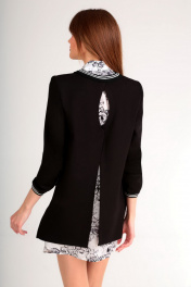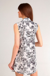 Комплект женский, состоит из блузы удлиненной без рукавов, выполненной из блузочной ткани и блузона, который надевается поверх блузки. Блузон прямого силуэта, выполнен из трикотажной ткани. Спинка состоит из двух удлиненных деталей с фигурным краем по центру спинки. Полочка укорочена, имеются фигурные вытачки, низ отделан трикотажной резинкой. Так же с трикотажной резинки выполнены манжеты и горловина. Блуза женская, прямого силуэта, удлиненная. Застежка центральная на планку. Воротник рубашечный, на стойке. Низ изделия закругленный, с разрезами по бокам. Проймы блузы отстрочены, обработаны нагрудные вытачки.