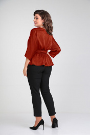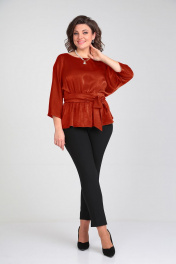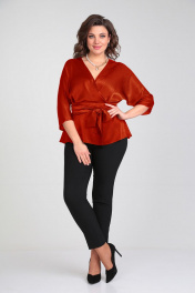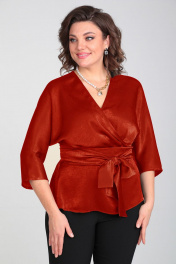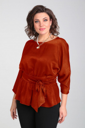 Летняя блуза с вырезом по спинке и широким поясом Таир-Гранд 62426 терракот