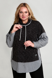 Блуза с воротником-хомутом и сочетанием тканей из текстиля и трикотажа Таир-Гранд 62428 темно-серый