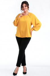 Круглогодичный комбинированный костюм из шифона и текстиля Таир-Гранд 62438 горчица