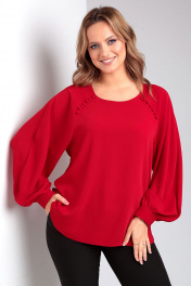 Летняя красная блузка свободного силуэта с пуговицами Таир-Гранд 62438 вишня