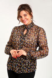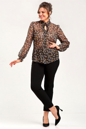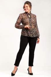 Блуза прямого силуэта с вытачками и контрастным принтом Таир-Гранд 62439 листья