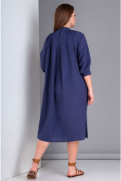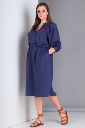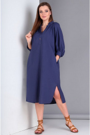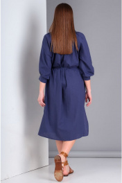 Модное платье прямого силуэта, фиксируется по талии тонким поясом из основной ткани. Застежка центральная на планку, изогнутой формы. Воротник стойка, с прямыми верхними краями. Рукав втачной, типа «реглан», который присобран у стойки горловины и по шву притачивания манжет. Рукав имеет изогнутую в области локтя форму, для лучшей динамики руки. В боковых швах обработаны потайные карманы, по низу отстрочены боковые разрезы. Полочка и спинка присборены у стойки, а по центру спинки обработаны две глубокие встречные складки.